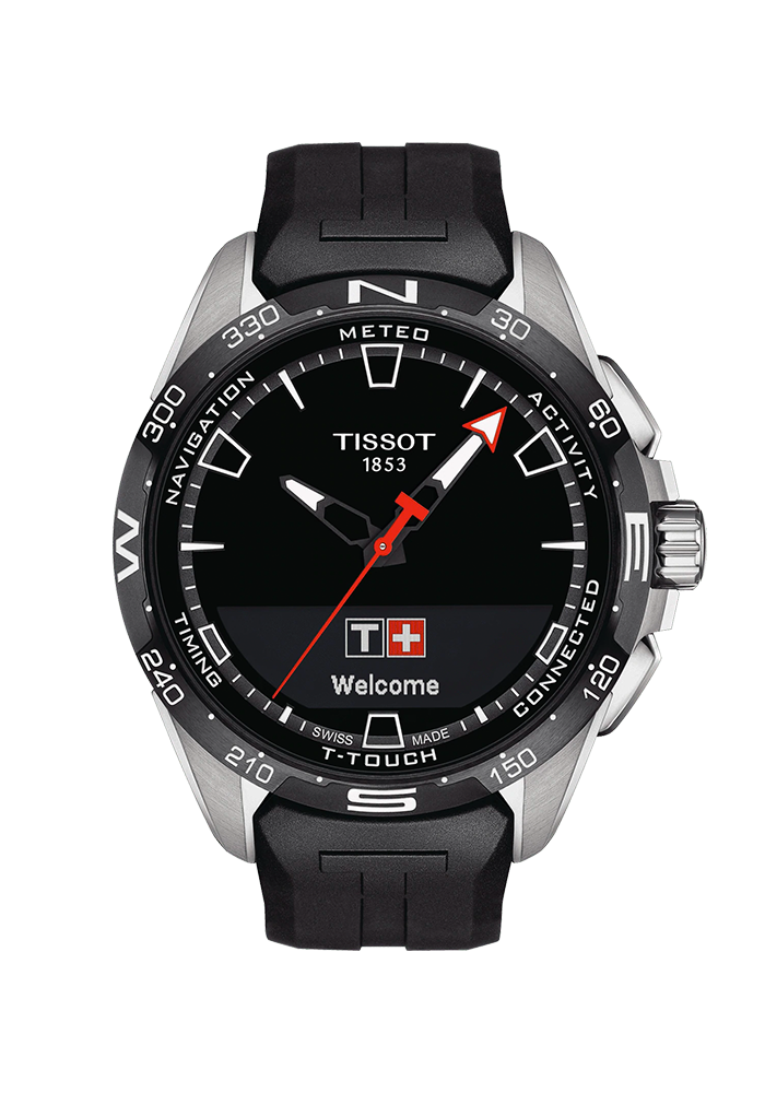 Als Nachfolgerin der ersten taktilen Multifunktionsuhr der Geschichte ist die T-Touch Connect Solar ein Sinnbild der Philosophie von Tissot: Innovators by Tradition. Die T-Touch Connect Solar weist alle Grundfunktionen einer T-Touch Solar Expert auf: ewiger Kalender, Countdown, Chronometrie, Alarme, Wetterbericht und Höhenmesser. Es gibt auch einige neue Funktionen wie den Aktivitätstracker und Benachrichtigungen zu Mitteilungen oder Anrufen. Die Informationen werden auf einem MIP (Memory in Pixel) Bildschirm angezeigt, der auch draußen perfekt ablesbar ist. Im Rahmen der Konzeption dieser Uhr wurden ganze 35 Patente angemeldet. Die Autonomie der T-Touch Connect Solar ist im nicht verbundenen Zustand quasi unbegrenzt. Im verbundenen Modus kann sie je nach Nutzung und Sonneneinstrahlung bis zu 6 Monate erreichen. Sie stützt sich hierfür auf modernste Solarzellen, um ihre Batterie frei und dauerhaft wieder aufzuladen. Die T-Touch Connect Solar setzt das Designabenteuer der T-Touch fort. Sie ist moderner, dynamischer und formvollendeter, sodass sie ihr Pedigree als technische Sportuhr für alle Gelegenheiten eindrucksvoll unter Beweis stellt. Sie ist aus satiniertem Titan, Titan mit schwarzer PVD-Beschichtung oder Titan mit roségoldener PVD-Beschichtung erhältlich. Diese Gehäuse können mit Armbändern aus Kautschuk oder Titan kombiniert werden.