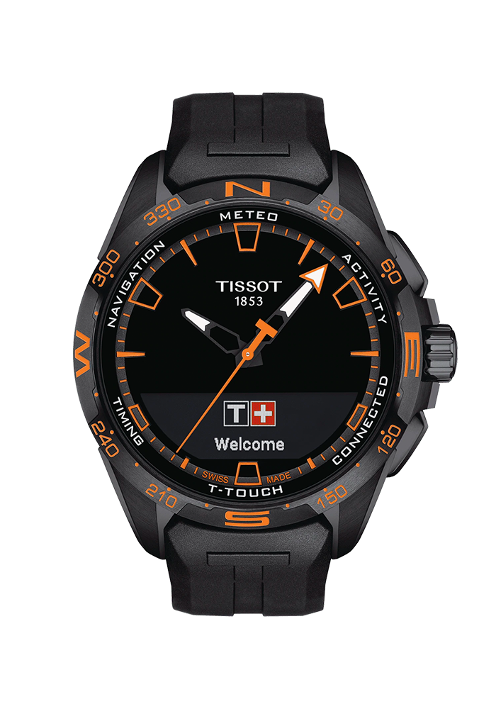 Als Nachfolgerin der ersten taktilen Multifunktionsuhr der Geschichte ist die T-Touch Connect Solar ein Sinnbild der Philosophie von Tissot: Innovators by Tradition. Die T-Touch Connect Solar weist alle Grundfunktionen einer T-Touch Solar Expert auf: ewiger Kalender, Countdown, Chronometrie, Alarme, Wetterbericht und Höhenmesser. Es gibt auch einige neue Funktionen wie den Aktivitätstracker und Benachrichtigungen zu Mitteilungen oder Anrufen. Die Informationen werden auf einem MIP (Memory in Pixel) Bildschirm angezeigt, der auch draußen perfekt ablesbar ist. Im Rahmen der Konzeption dieser Uhr wurden ganze 35 Patente angemeldet. Die Autonomie der T-Touch Connect Solar ist im nicht verbundenen Zustand quasi unbegrenzt. Im verbundenen Modus kann sie je nach Nutzung und Sonneneinstrahlung bis zu 6 Monate erreichen. Sie stützt sich hierfür auf modernste Solarzellen, um ihre Batterie frei und dauerhaft wieder aufzuladen. Die T-Touch Connect Solar setzt das Designabenteuer der T-Touch fort. Sie ist moderner, dynamischer und formvollendeter, sodass sie ihr Pedigree als technische Sportuhr für alle Gelegenheiten eindrucksvoll unter Beweis stellt. Sie ist aus satiniertem Titan, Titan mit schwarzer PVD-Beschichtung oder Titan mit roségoldener PVD-Beschichtung erhältlich. Diese Gehäuse können mit Armbändern aus Kautschuk oder Titan kombiniert werden.